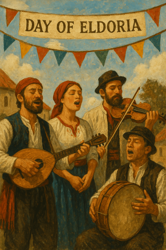 Folk songs honoring Eldoria’s wisdom are sung throughout the day, led by the town’s musicians and storytellers.