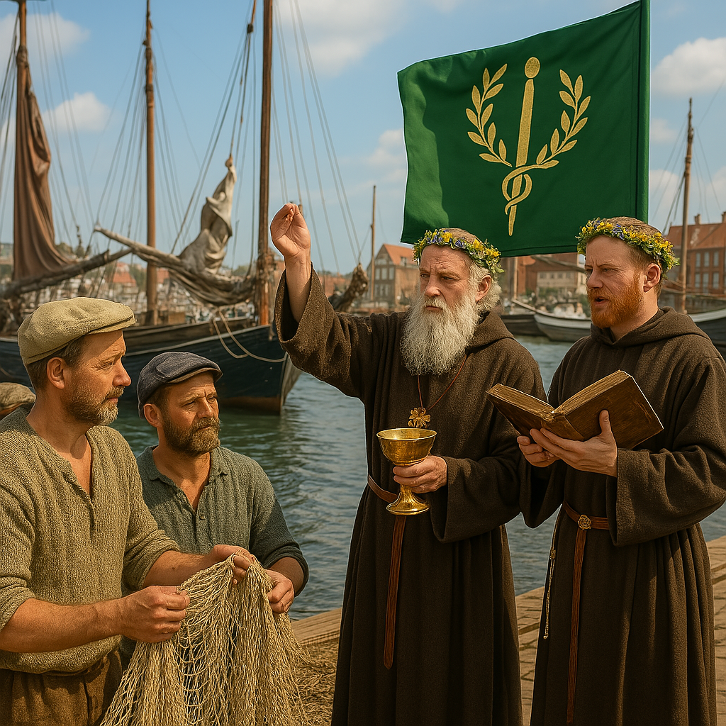 Fishermen and sailors bless their nets and boats, offering thanks for the bounty of the sea, acknowledging that prosperity comes in many forms. The focus here is on maritime blessings rather than agricultural prosperity, as the town’s livelihood depends on the sea.
