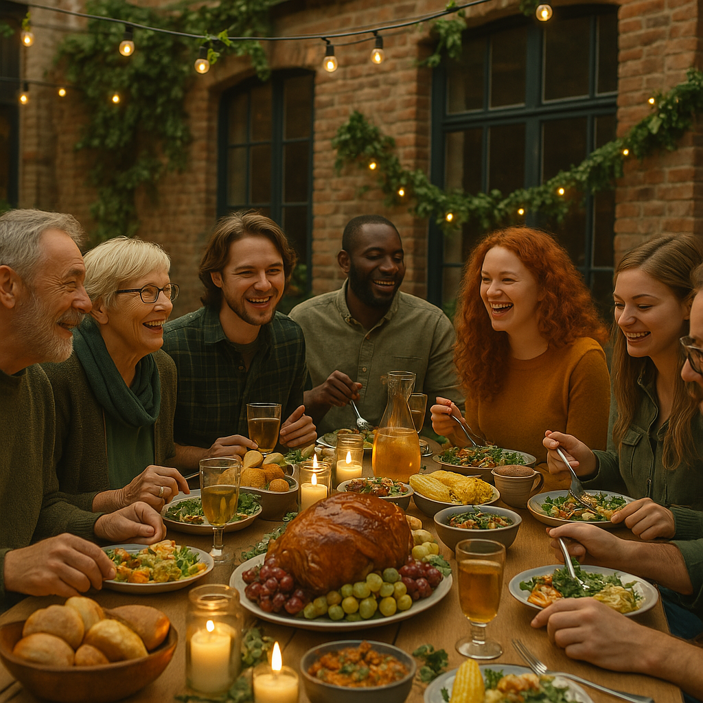 The feast represents abundance, unity, and the blessings of the land.