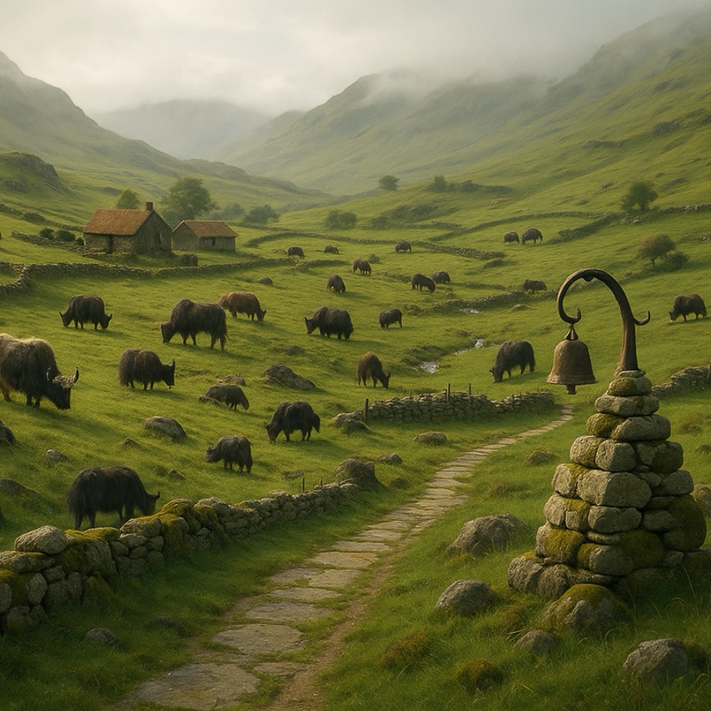 Nestled between Velthryn and Eldermere, Nava’tano Vale is a place of patience, pasture trails, and softly sung cheese. Here, the yaks choose their humans, the bells decide the mood, and time itself seems to nap in the tall grass.