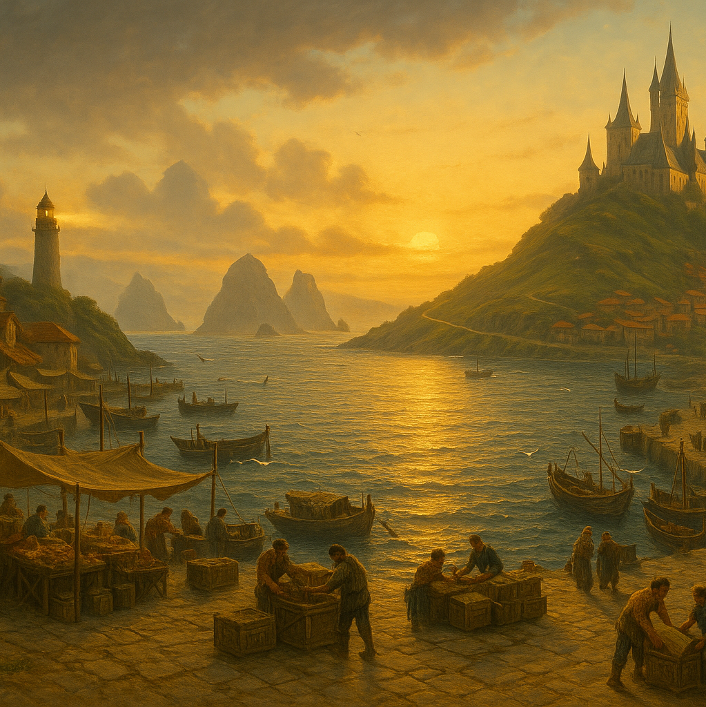 Ailani’s Bay – Named for Glanvaria’s first second in command, Ailani’s Bay is the maritime gateway to Velthryn. The Branvaragh ferry arrives hourly, and with it, comes crates of fruit, scrolls, and gossip.