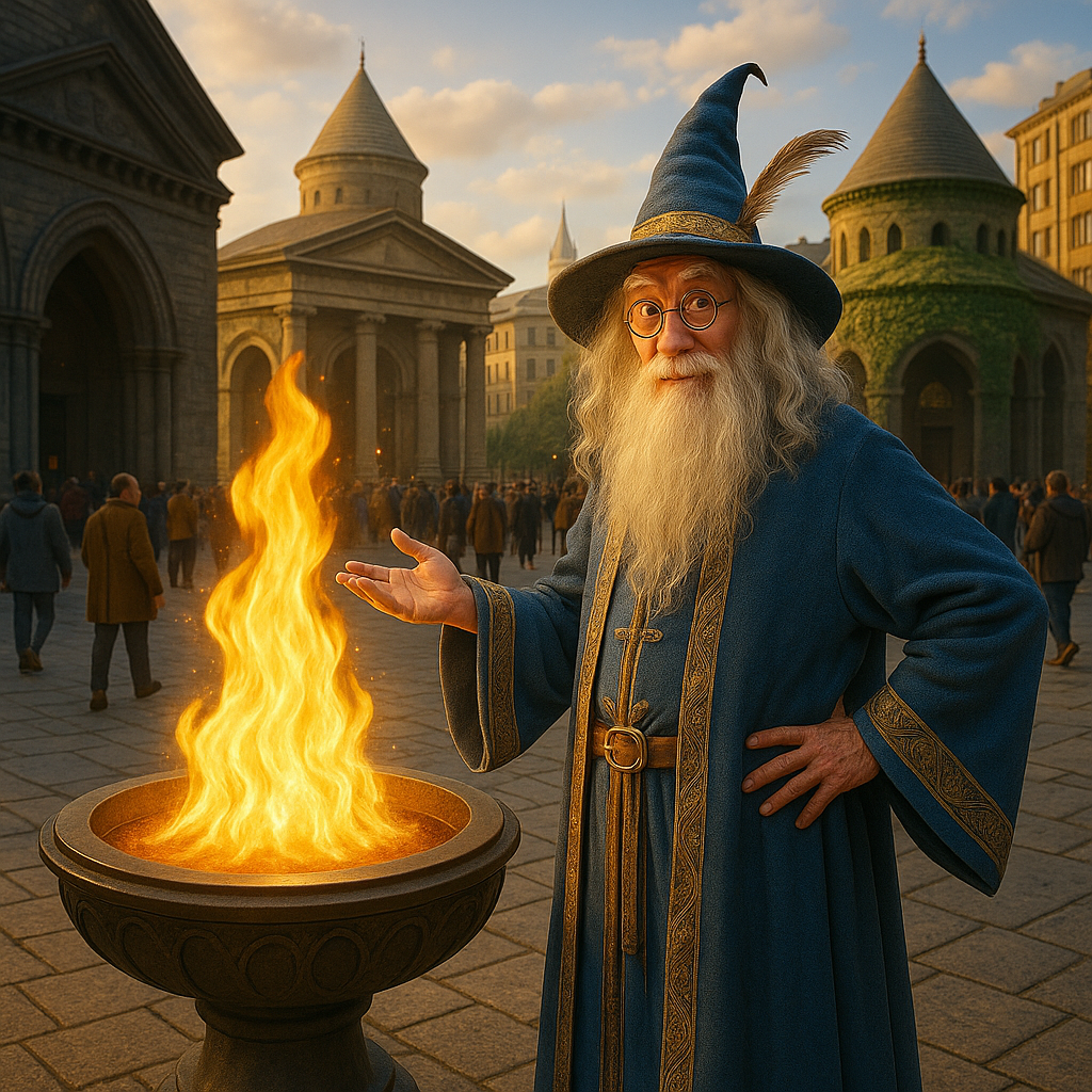 Larry the Wizard – Magical Advisor to the Crown. Aspiring professional pinball player. His last name is not Potter, and he’ll be the first to correct you—firmly, and with a short lecture on copyright law and magical originality.